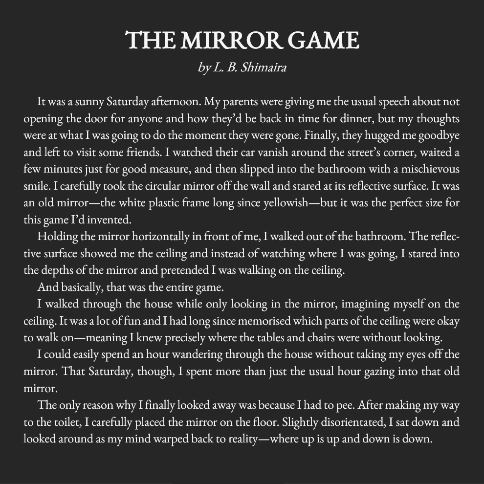 🕯 Fun fact about THE MIRROR GAME: I genuinely played the initial mirror game mentioned in this story. Like, a lot. And no, I won't tell you the status of my reflection.